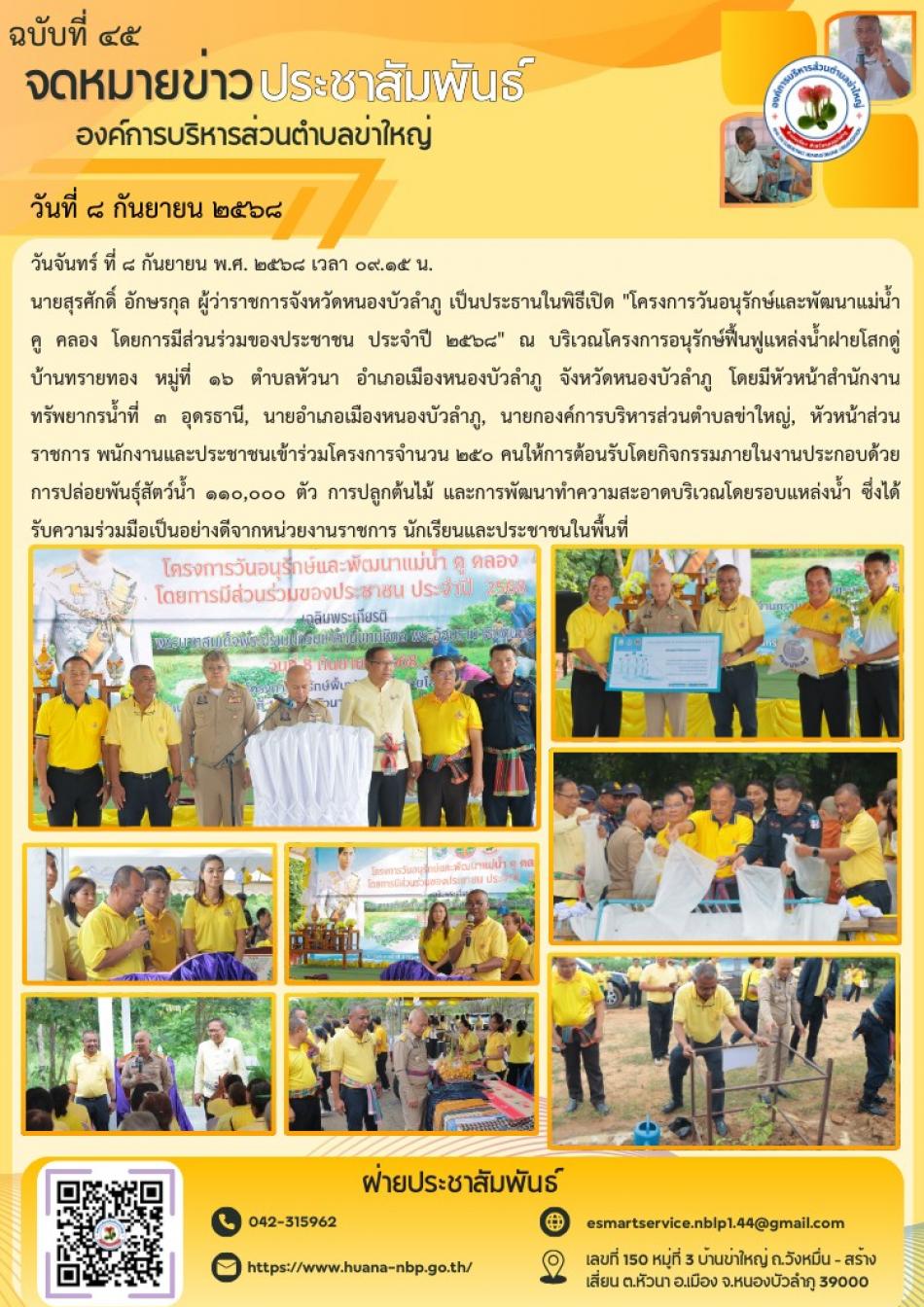 โครงการวันอนุรักษ์และพัฒนาแม่น้ำ คู คลอง โดยการมีส่วนร่วมของประชาชน ประจำปี ๒๕๖๘[8 กันยายน 2568]