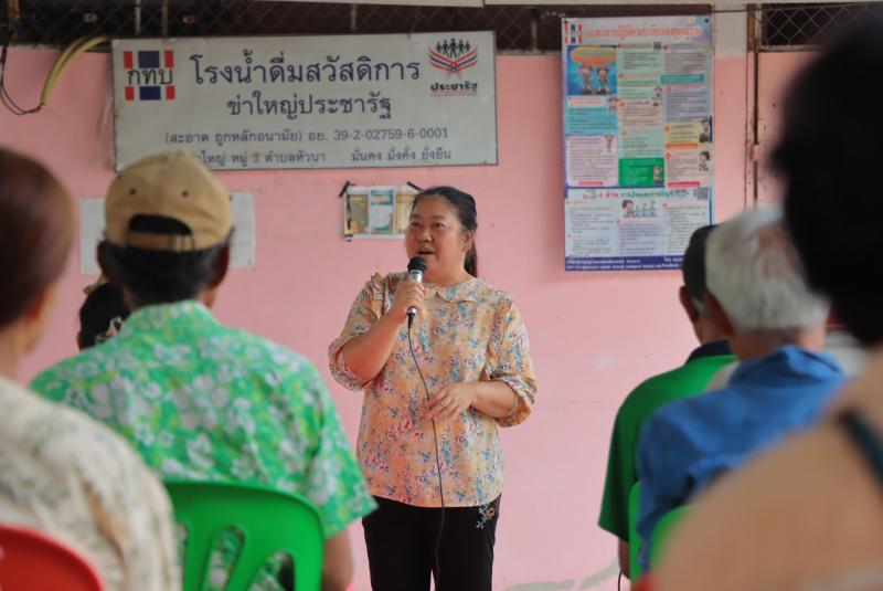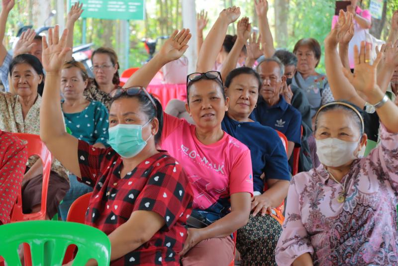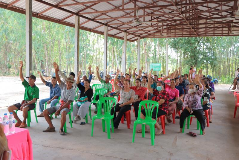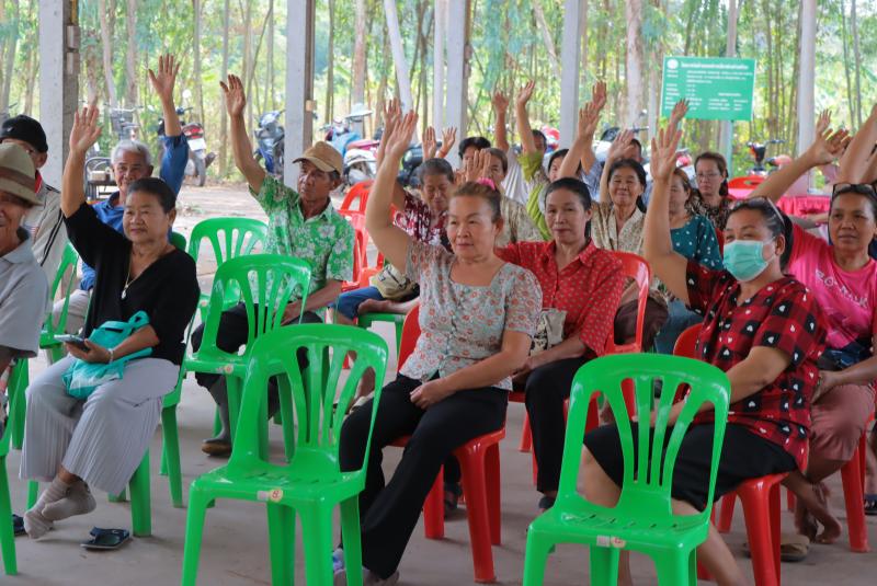 ร่วมประชาคม เรื่องการขุดลอกหนองทามปลาปึ่ง รวมถึงโครงการก่อสร้างสนามกีฬาอเนกประสงค์ และโครงการเปลี่ยนท่อประปาหมู่บ้าน