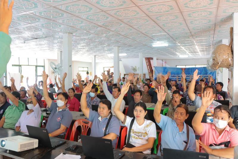 เข้าร่วมประชาคม เรื่องการขุดลอกหนองทามปลาปึ่ง รวมถึงโครงการก่อสร้างสนามกีฬาอเนกประสงค์ และโครงการเปลี่ยนท่อประปาหมู่บ้าน