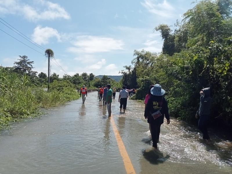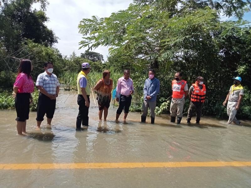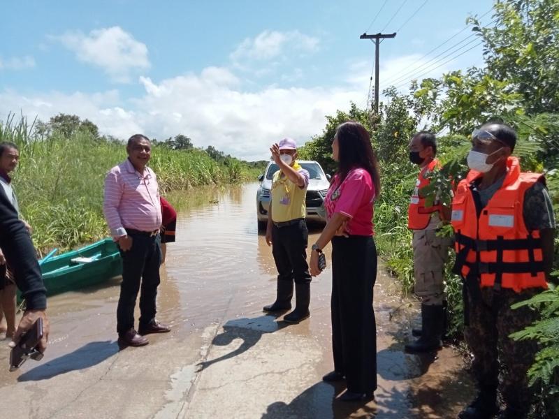 นายอำเภอเมืองหนองบัวลำภู ลงพื้นที่สำรวจน้ำท่วม ฝายน้ำพะเนียง ตำบลหัวนา