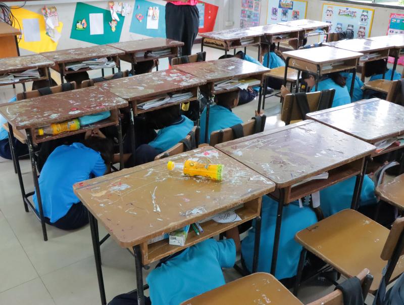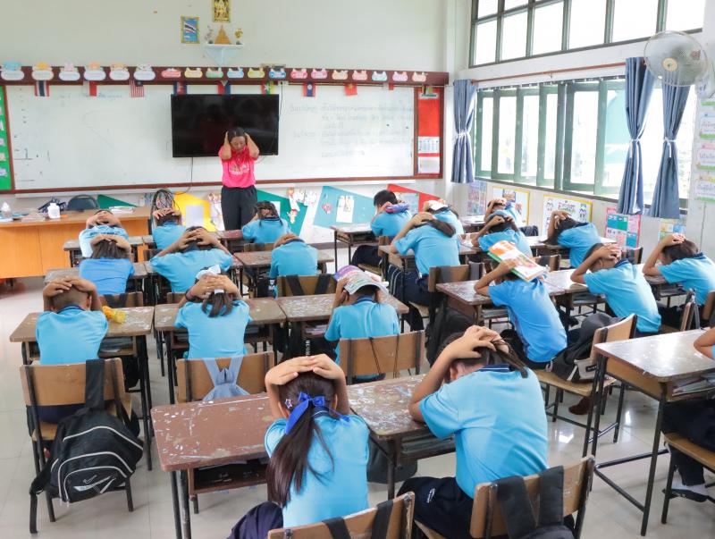 โครงการสถานศึกษาปลอดภัย กิจกรรมซ้อมแผนเผชิญเหตุ การป้องกันอัคคีภัยและแผ่นดินไหว