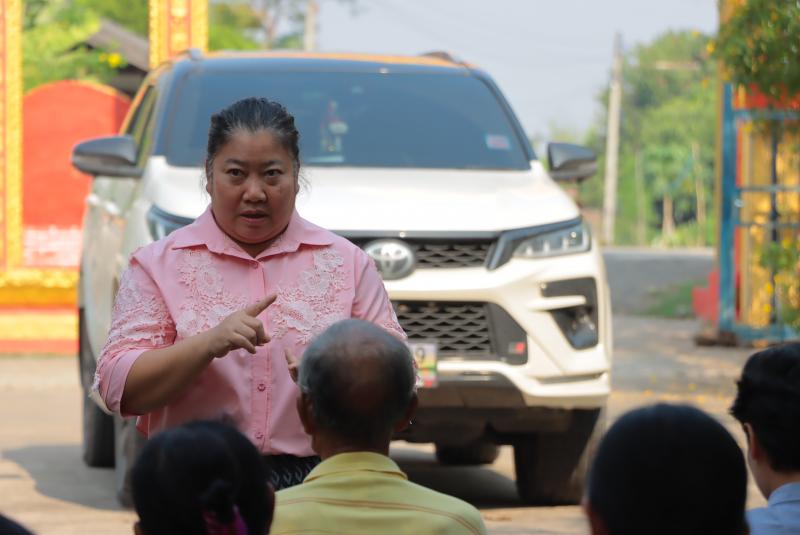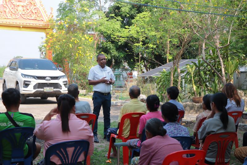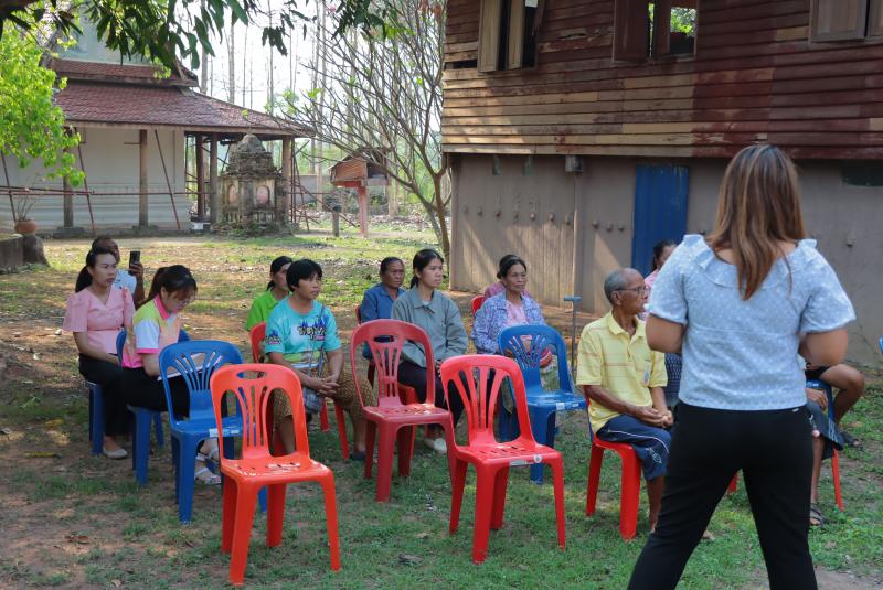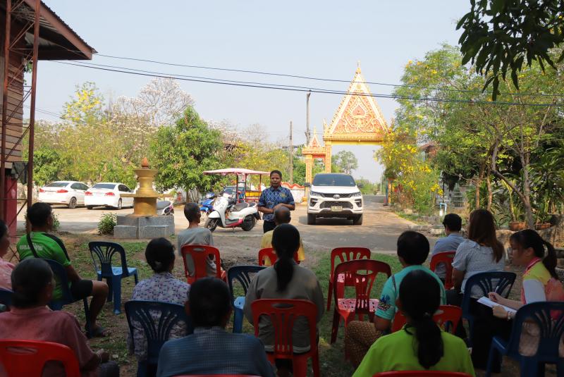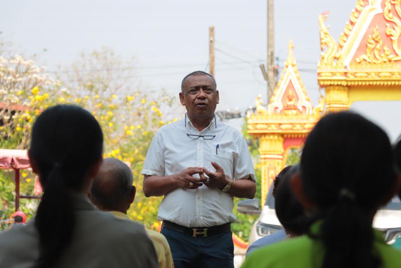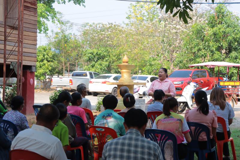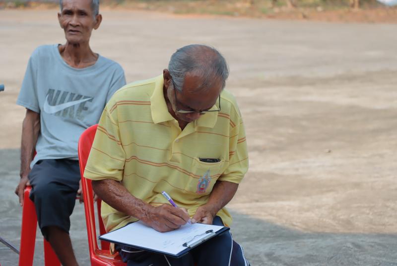 “ เรื่องการประชาคมขุดลอกหนองทามปลาปึ่ง รวมถึงสนามกีฬาอเนกประสงค์ และโครงการเปลี่ยนท่อประปาหมู่บ้าน”