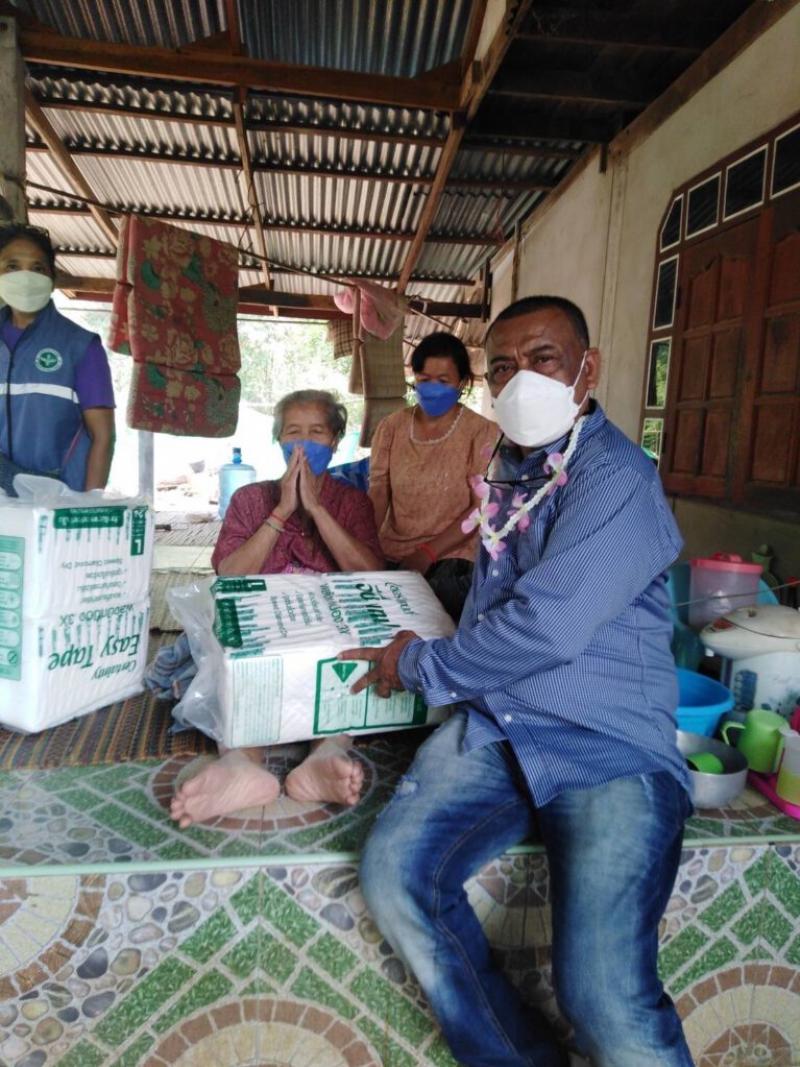 ร่วมมอบ รถเข็น แพมเพิร์สและไม้เท้าสามขา ให้กับผู้สูงอายุ คนพิการและผู้ป่วยติดเตียงที่ไม่สามารถช่วยเหลือตนเองได้