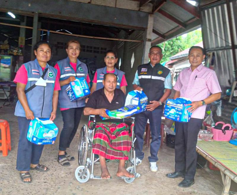 พร้อมพันจ่าเอกวิษณุ ศรีปัจฉิม นิติกรชำนาญการ อาสาสมัครสาธารณสุขประจำหมู่บ้าน และผู้ดูแลผู้สูงอายุ (CG) ได้ดำเนินการมอบผ้าอ้อมผู้ใหญ่