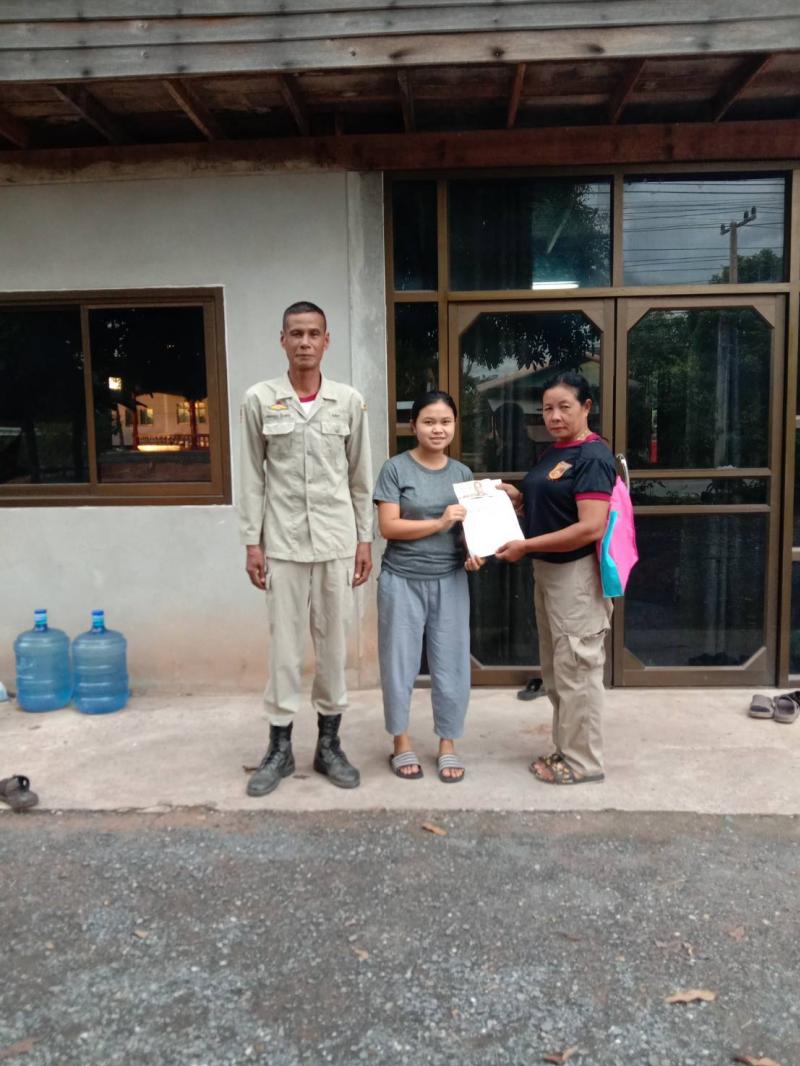 งานสวัสดิการ อปพร.อบต.หัวนา มอบเงิน 1000 บาท กรณีนอน โรงพยาบาล