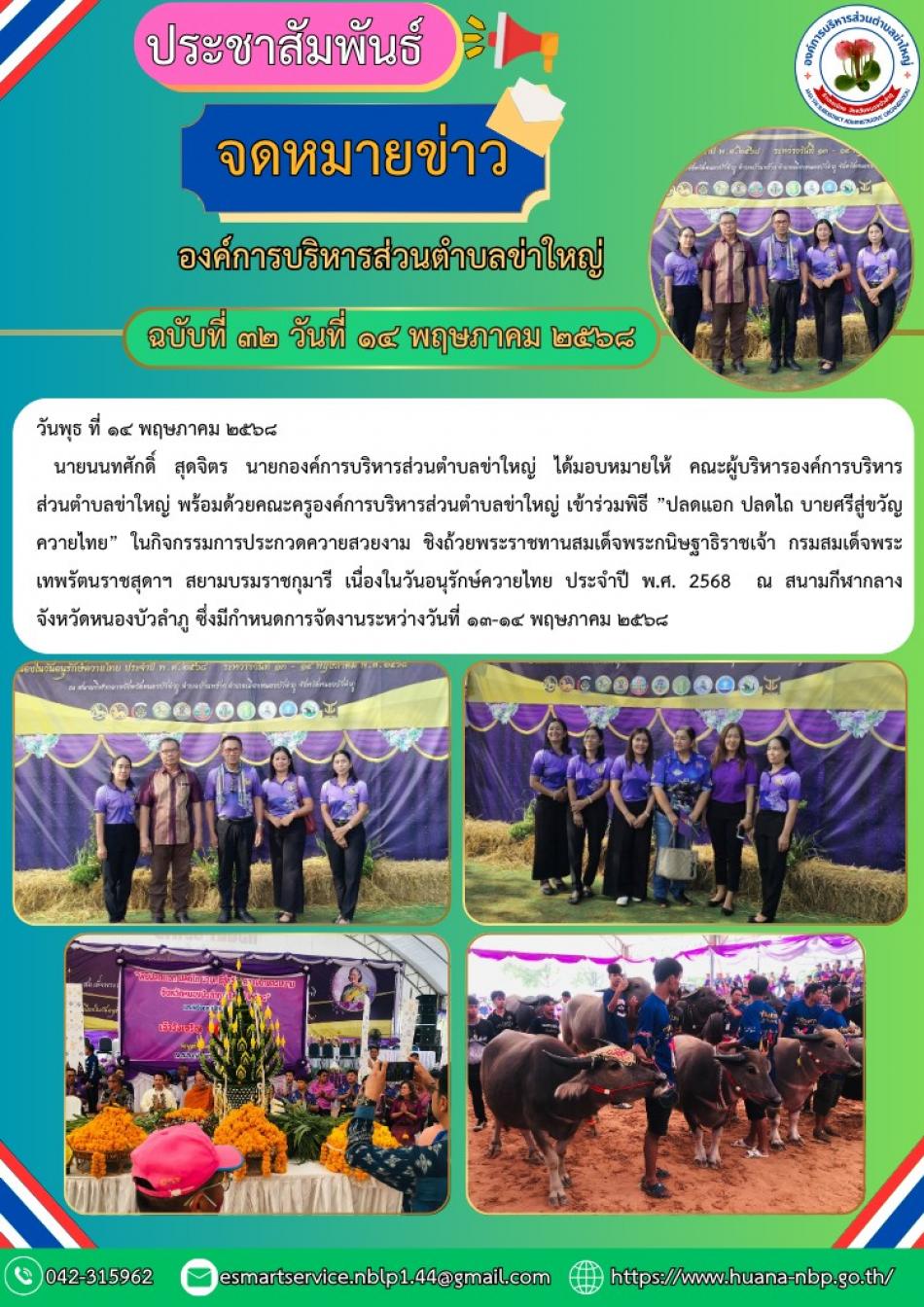 ร่วมพิธี ปลดแอก ปลดไถ บายศรีสู่ขวัญ ควายไทย ในกิจกรรมการประกวดควายสวยงาม ชิงถ้วยพระราชทานสมเด็จพระกนิษฐาธิราชเจ้า กรมสมเด็จพระเทพรัตนราชสุดาฯ สยามบรมราชกุมารี เนื่องในวันอนุรักษ์ควายไทย ประจำปี พ.ศ. 2568 [14 พฤษภาคม 2568]