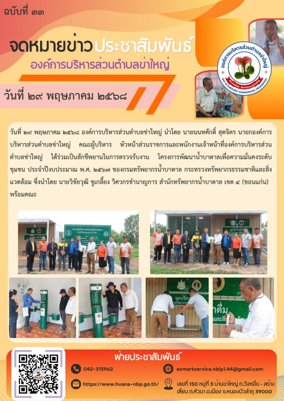 ร่วมเป็นสักขีพยานในการตรวจรับงาน โครงการพัฒนาน้ำบาดาลเพื่อความมั่นคงระดับชุมชน ประจำปีงบประมาณ พ.ศ. ๒๕๖๗ [29 พฤษภาคม 2568]