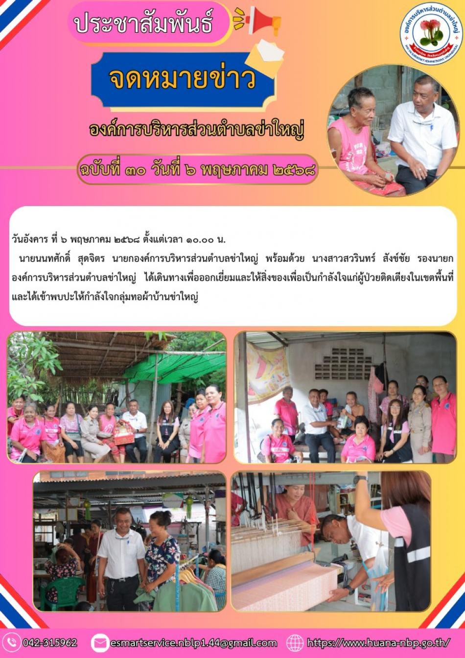 เยี่ยมบ้านผู้ป่วยติดเตียงในพื้นที่และพบปะให้กำลังใจกลุ่มทอผ้าบ้านข่าใหญ่ [6 พฤษภาคม 2568]