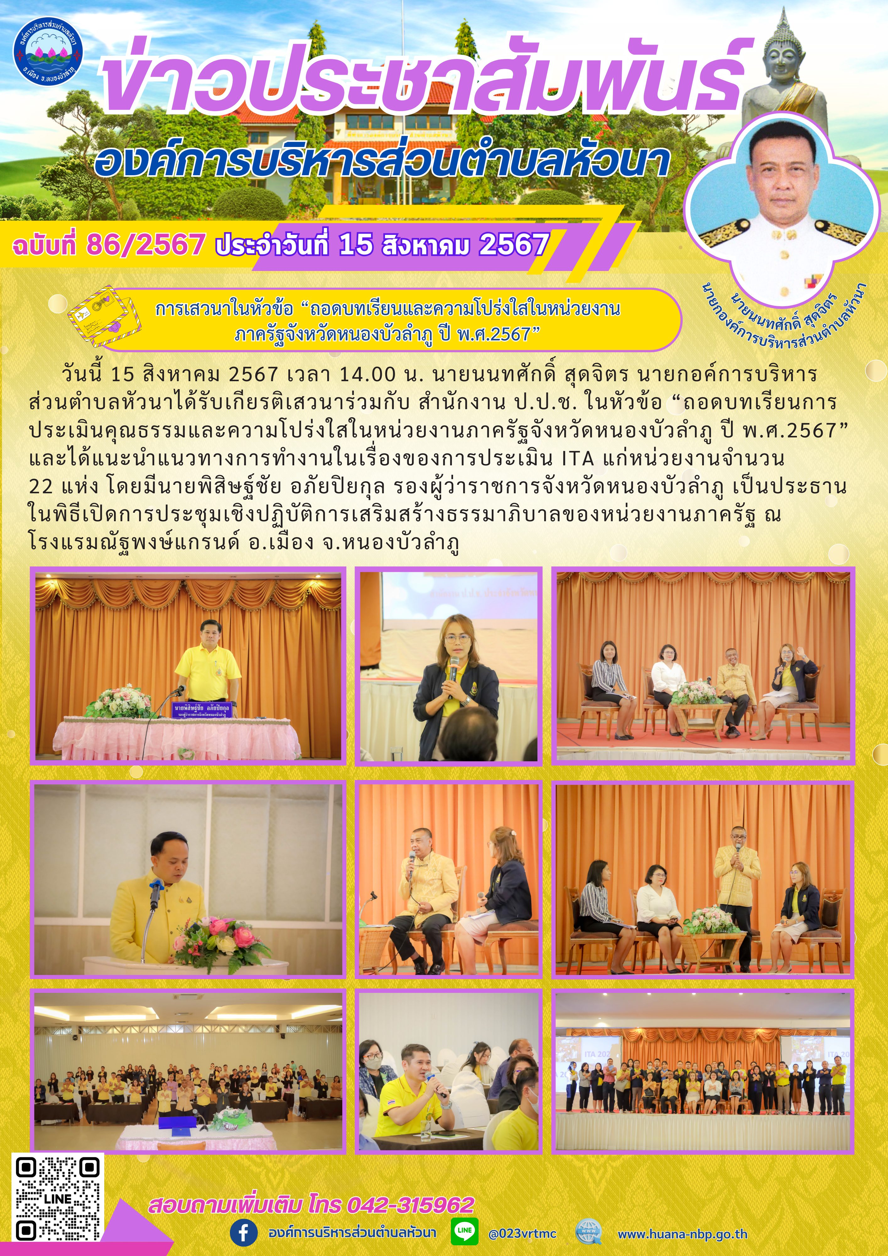 การเสวนาในหัวข้อ “ถอดบทเรียนและความโปร่งใสในหน่วยงานภาครัฐจังหวัดหนองบัวลำภู ปี พ.ศ.2567” [15 สิงหาคม 2567]