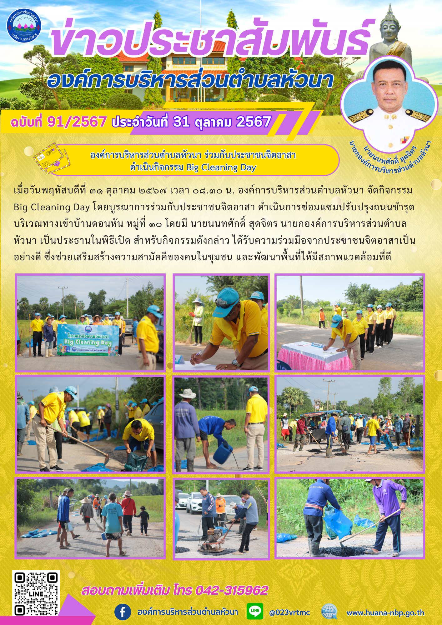 องค์การบริหารส่วนตำบลหัวนา ร่วมกับประชาชนจิตอาสา ดำเนินกิจกรรม Big Cleaning Day [31 ตุลาคม 2567]