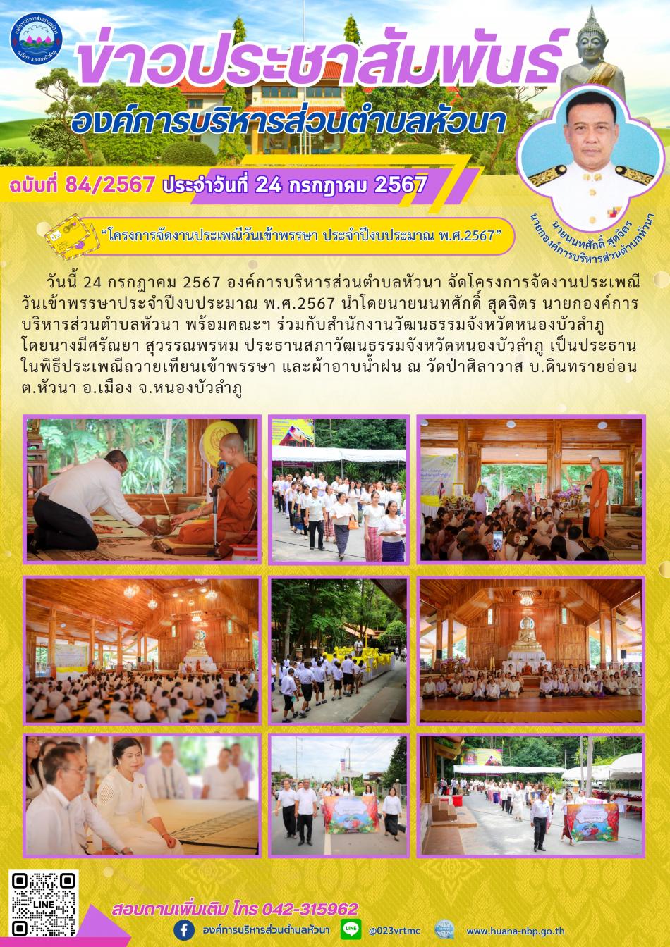 โครงการจัดงานประเพณีวันเข้าพรรษาประจำปีงบประมาณ พ.ศ.2567 [24 กรกฎาคม 2567]