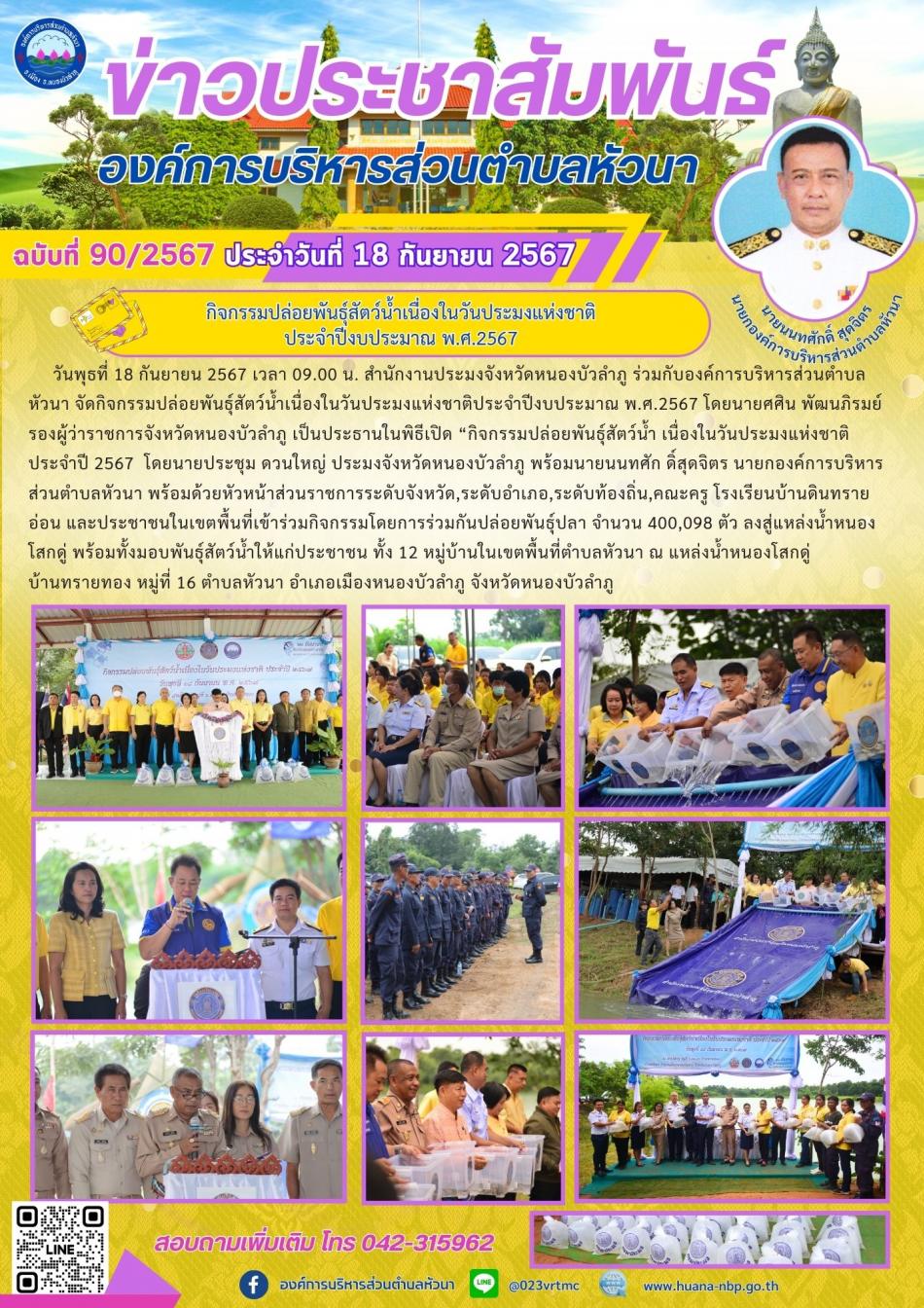 กิจกรรมปล่อยพันธุ์สัตว์น้ำ เนื่องในวันประมงแห่งชาติ ประจำปี 2567 [18 กันยายน 2567]