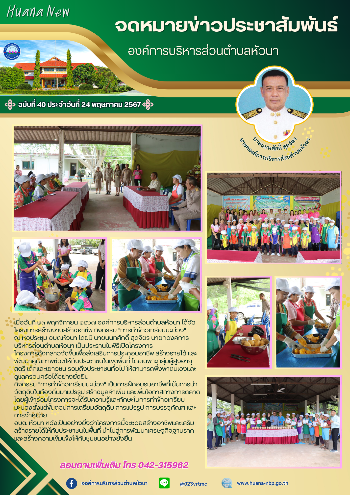 อบต. หัวนา จัดโครงการสร้างงานสร้างอาชีพ "การทำข้าวเกรียบมะม่วง" เสริมรายได้ให้ผู้สูงอายุ สตรี เด็ก เยาวชน และประชาชน [23 พฤษภาคม 2567]