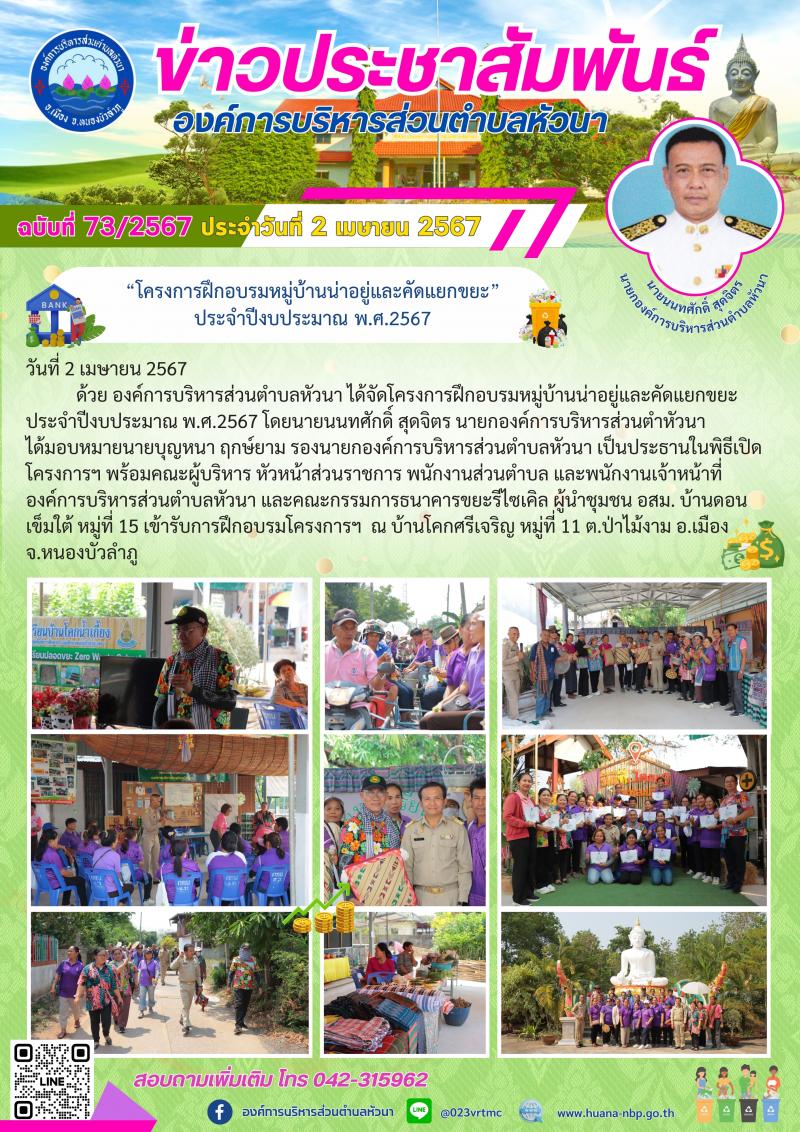โครงการฝึกอบรมหมู่บ้านน่าอยู่และคัดแยกขยะ ประจำปีงบประมาณ พ.ศ.2567 [2 เมษายน 2567]