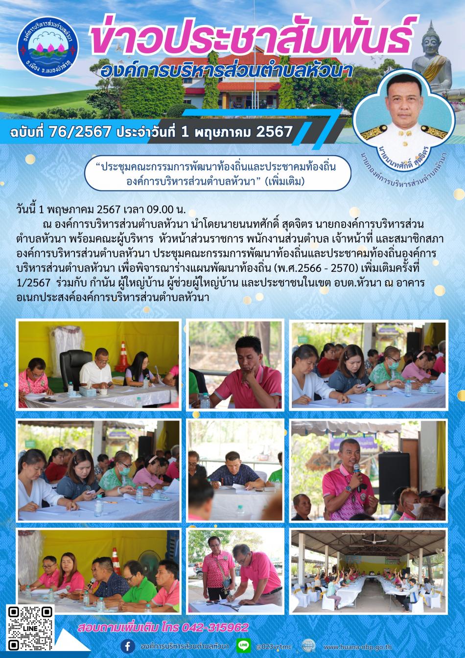 ประชุมคณะกรรมการพัฒนาท้องถิ่นและประชาคมท้องถิ่นองค์การบริหารส่วนตำบลหัวนา [1 พฤษภาคม 2567]