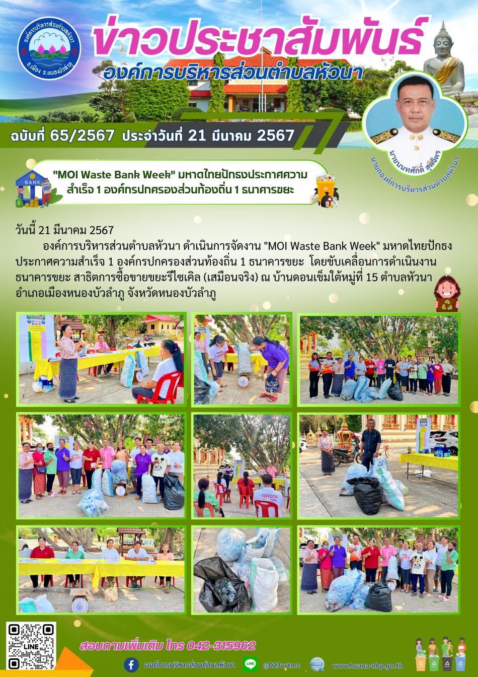 "MOI Waste Bank Week" มหาดไทยปักธงประกาศความสำเร็จ 1 องค์กรปกครองส่วนท้องถิ่น 1 ธนาคารขยะ [21 มีนาคม 2567]