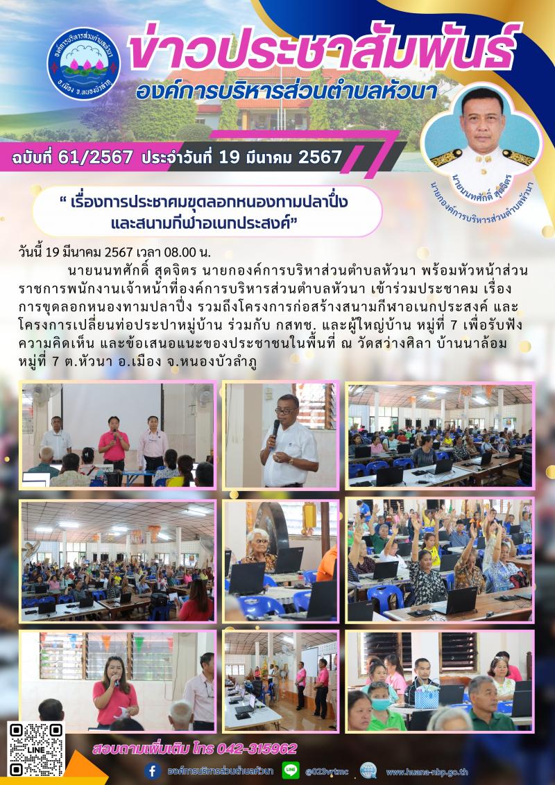 ร่วมประชาคม เรื่องการขุดลอกหนองทามปลาปึ่ง รวมถึงโครงการก่อสร้างสนามกีฬาอเนกประสงค์ และโครงการเปลี่ยนท่อประปาหมู่บ้าน [19 มีนาคม 2567]