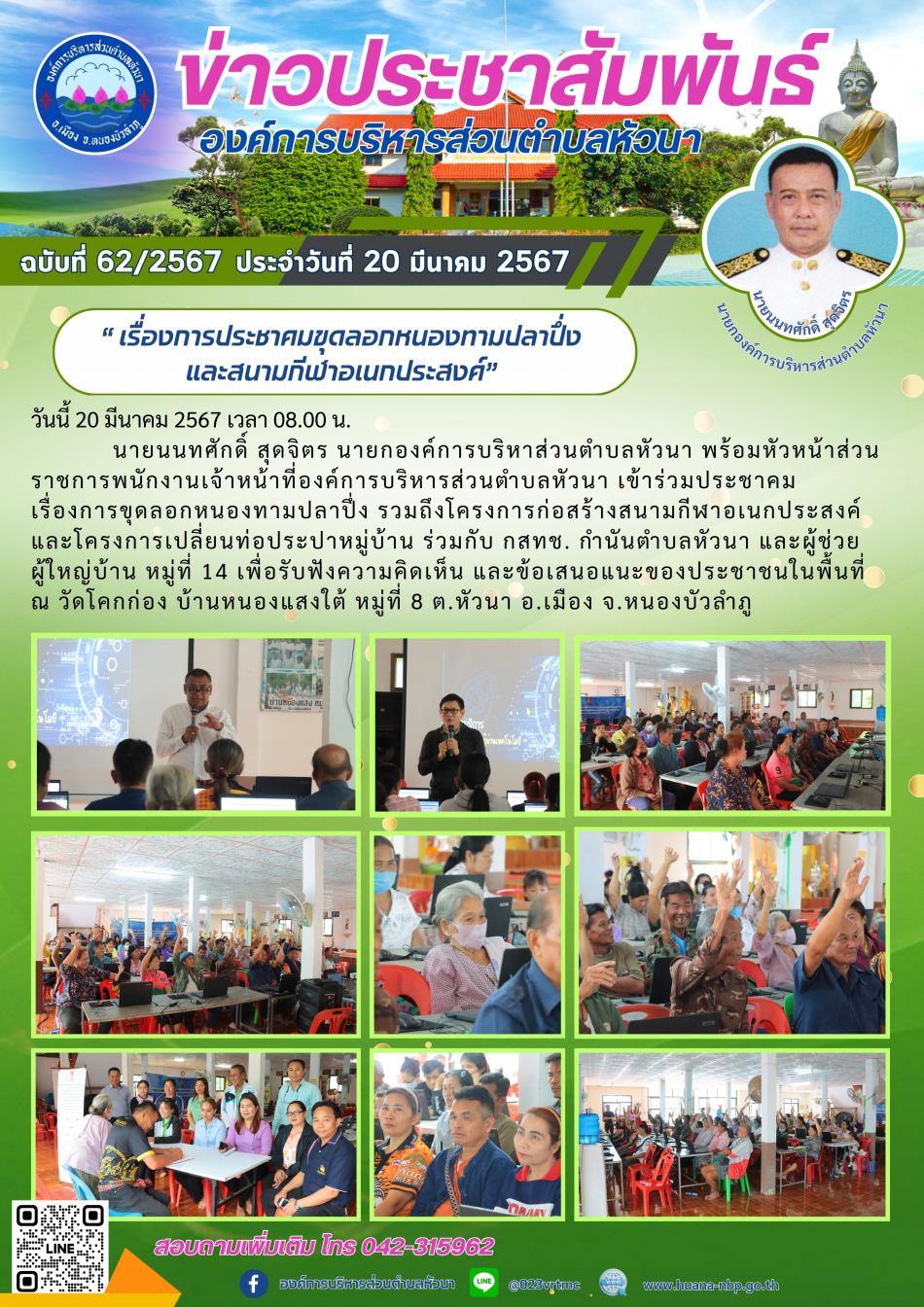 เข้าร่วมประชาคมเรื่องการขุดลอกหนองทามปลาปึ่ง รวมถึงโครงการก่อสร้างสนามกีฬาอเนกประสงค์ และโครงการเปลี่ยนท่อประปาหมู่บ้าน [20 มีนาคม 2567]