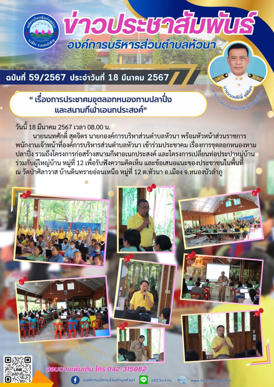 เรื่องการประชาคมขุดลอกหนองทามปลาปิ้งและสนามกีฬาอเนกประสงค์ [18 มีนาคม 2567]