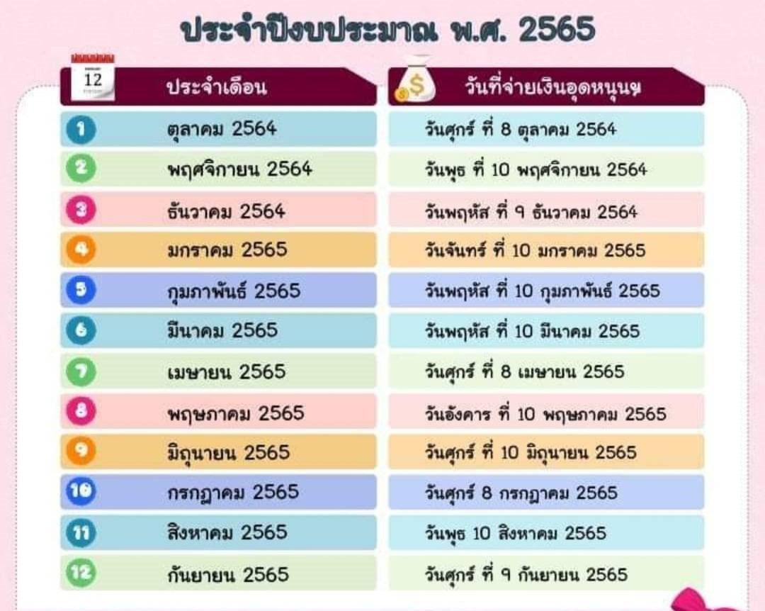 ตารางการจ่ายเบี้ยยังชีพผู้สูงอายุ คนพิการ ประจำปีงบประมาณ 2565