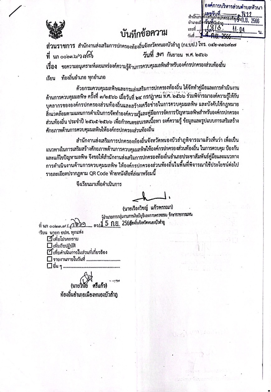 งานสาธารณสุขและสิ่งแวดล้อม สำนักปลัด อบต.หัวนา
