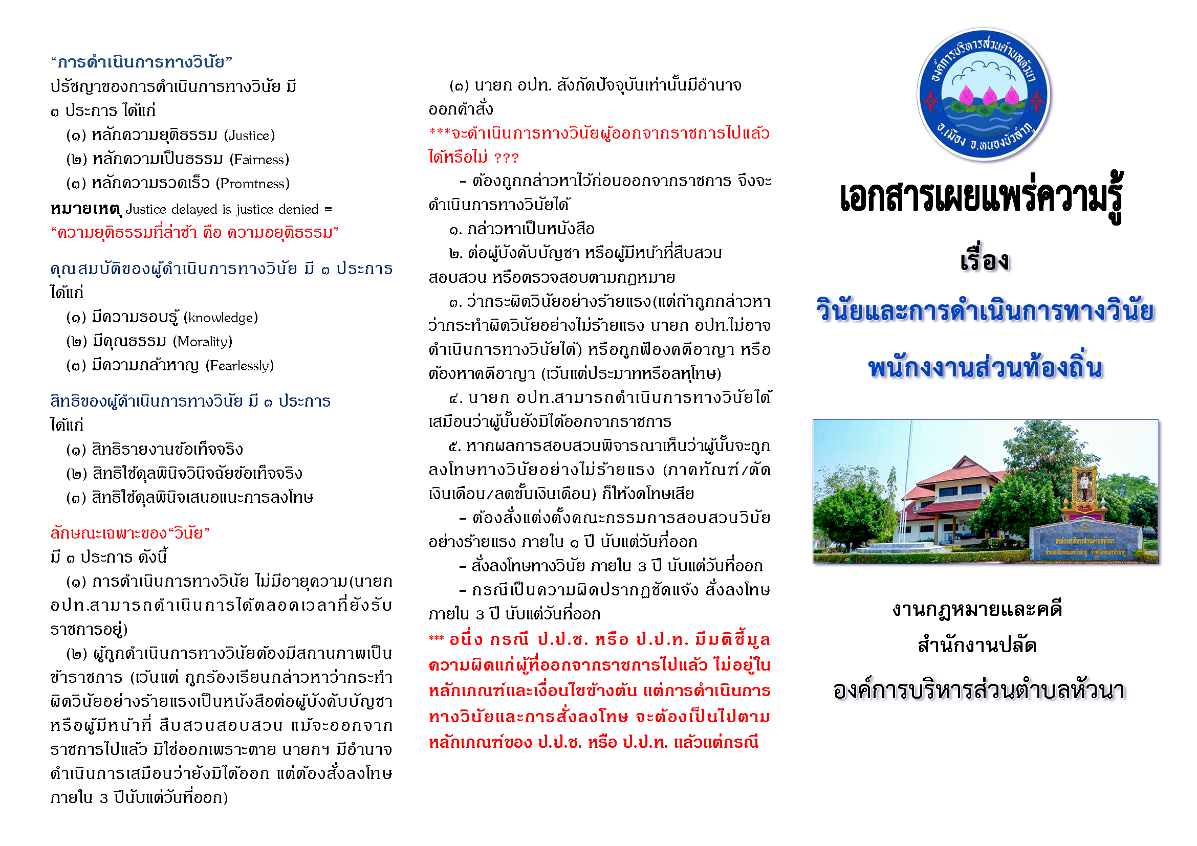 ชื่อเรื่อง : แผ่นพับ เรื่อง วินัยและการดำเนินการทางวินัยพนักงานส่วนท้องถิ่น