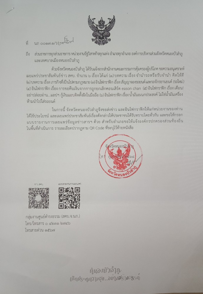 ประชาสัมพันธ์ ข่าวสคบ.ด้านการคุ้มครองผู้บริโภค จำนวน 6 เรื่่อง